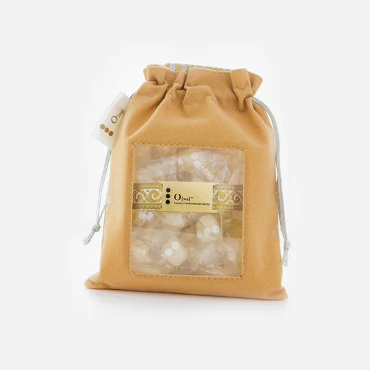 Experience the signature taste of O[wa] Candy – Pearl (Mild) in a beautifully crafted Omani handicraft pouch. Made with high-quality Omani frankincense, this gentle and refined candy offers a soft, calming aroma and a delicately sweet flavor, perfect for everyday mindful enjoyment.